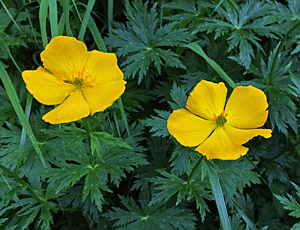 | シナノキンバイ・キンポウゲ科 花が大きく鮮やかな色 よく似たミヤマキンバイは、 花が小さくひょろひょろしている |