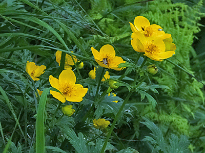 | シナノキンバイ:キンポウゲ科 ミヤマキンポウゲより花が大きいので 群生していると、豪華で見事~ |