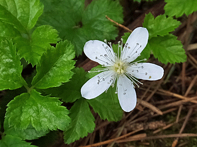 | ゴゼンタチバナ:ミズキ科 スリーシスターズ 岩陰に咲いていた |