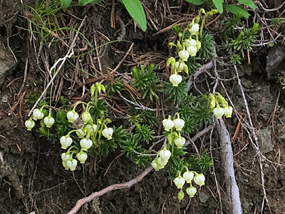 | イチヤクソウの仲間:ツツジ科 薄暗い樹林の中の花は少ない 大樺沢が恋しい・・・ |