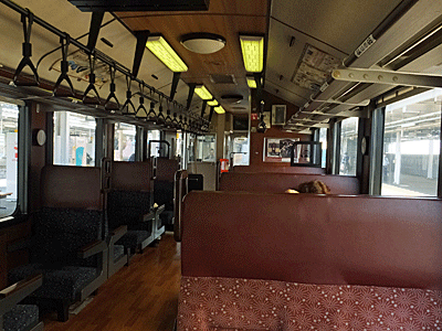| 車内の様子 ここで、ペンションに預かってもらうに荷物と、(手提げバッグ) 担いでいく荷物に分けた(ザック) 乗り越しの料金を聞いて、両替しようとしたら 「使えません」と言われた 駅で払うように・・・と |