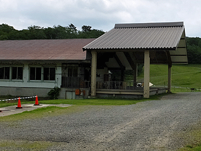 | キャンプ場のような広い場所に着いた お客は数組だけ ↓ 「ここにトイレがあります」と言われ、建物の前で下りた 車はすぐ走り去った 11:39 スキーシーズンの更衣室などがある建物だった |