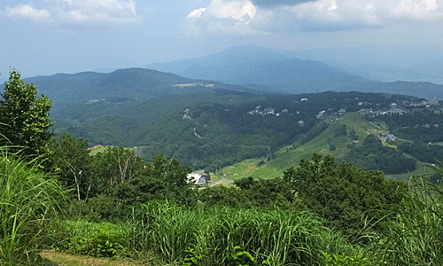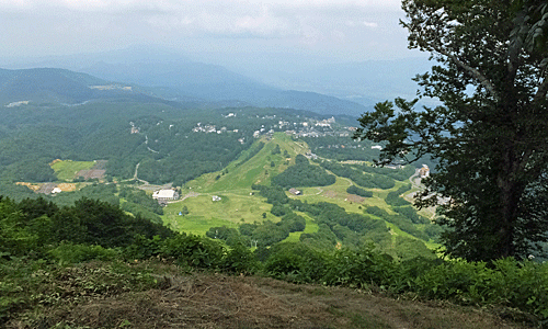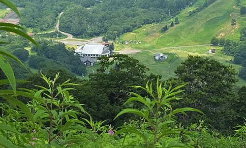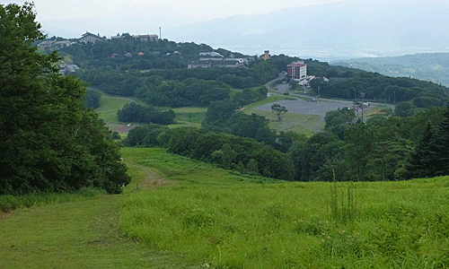 | 登ってきた方を見下ろした もう、スキー場登りはオ・シ・マ・イ~ 暑かった~ |