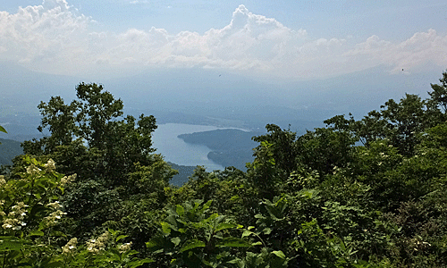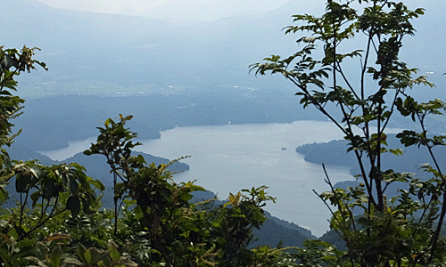 | あら、こんな所からでも、野尻湖が見えるじゃないの! 大明神岳からより大きく見えた |