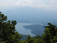 | どんなに素晴らしい眺めが見えるかと期待していたが、 野尻湖は見下ろされたが 山はぼ~んやりで見えなかった・・・ |