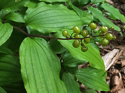| オオバユキザサかな?:ユリ科 ここの稜線、さっき野尻湖が見えただけで 葉が茂って展望は良くない |