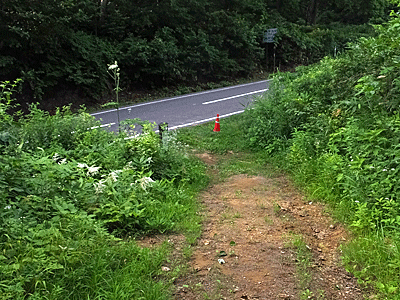 | 林道らしい場所に出た 16:06 ここでペンションに電話を掛けた 「大きな看板があって林道のような所です」と |