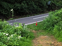 | 「万坂峠 0.1km」 もうすぐ・・・と思ったら 道路が見えた ↓ |