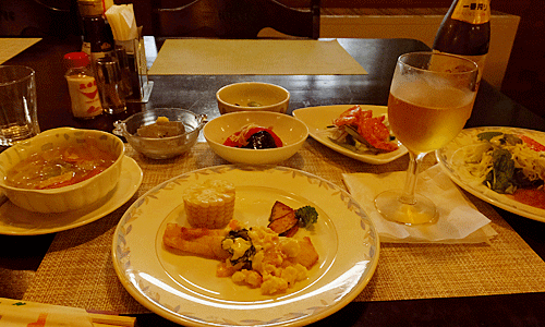 | スープはおなかいっぱいで食べられず 他は完食 皆、おいしかった! 勿論ビールも 冷たいビールがおいしかった~ |