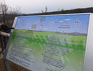| 綺麗に整地された展望台には、ここから展望できる山々の名前と説明文 白山・御嶽・北アルプス・笠置山・中央アルプス・恵那山などが見えるらしいが 今日は朝からのどんより雲で、イマイチはっきりしなかった このまま進んでも、元の登山口へ戻れないことともないそうだが 団地の中の道を延々と歩くのは願い下げ もと来た道を引き返す 14:00発 |