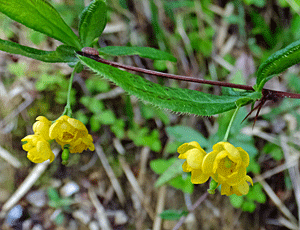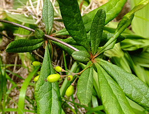 | ヘビノボラズ:メギ科 湿地が好きな花 花は終わって実ができていた 花は、こんな↓黄色い花 |