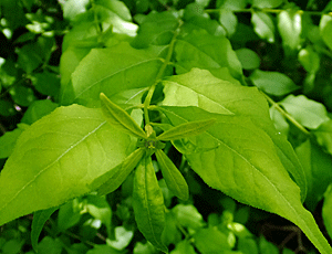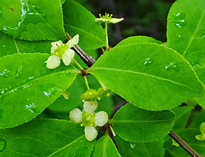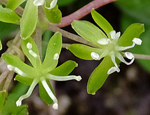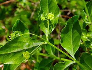 | ツクバネ:ビャクダン科 この湖畔の道には、たくさん群生している 雌雄異株 上 雌花 下 雄花 |