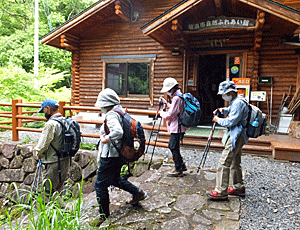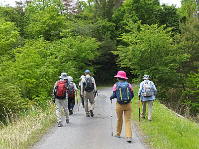 | 急な道をどんどん下って 「ふれあい館」に着いた 全員集合場所 9:34 電話の内容を話して 安心してもらった |