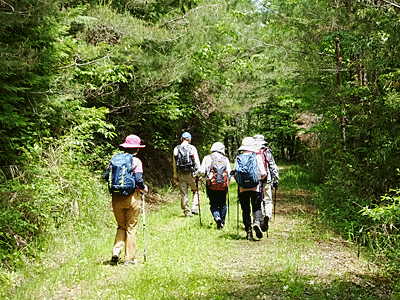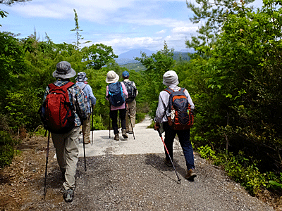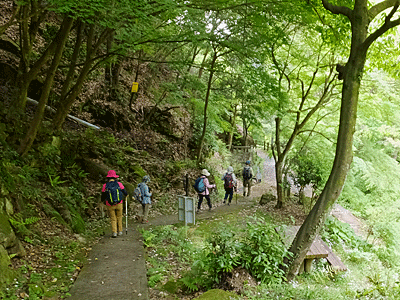 2回目の昼食休憩後、下山開始 二通りの下山路があるが 今日は全員「アルプスの小径」へ 下りなので、 階段ばかりでも さほどきつくはなかった |
