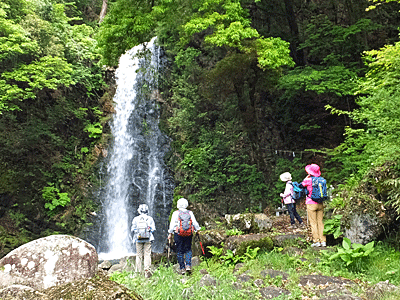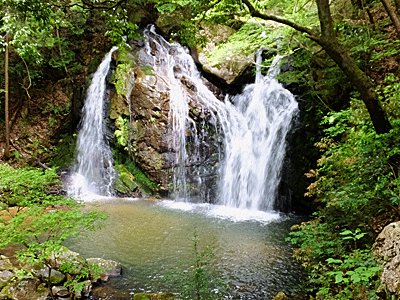| 次は、二の滝 9:43 今日はちょっと水量が少なめ ・・・・・・・ ここで、みんなと別れ、 一足先に竜吟湖へ行くことにした |