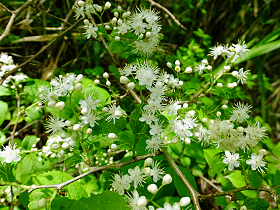 | サワフタギ(沢蓋木):ハイノキ科 つんつん出ているのは雄しべ とても華やかに見える |