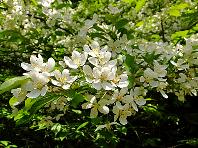 | ズミ(別名コリンゴ・コナシ):バラ科 満開〜 10日前は真っ赤なつぼみばかりだったのに・・・ ↓ |