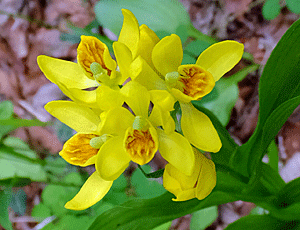 | キンラン:ラン科 まっ黄色の花に目を惹かれた 今日は、計4株に出会った |