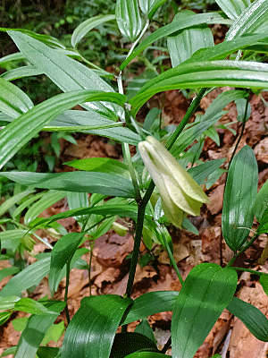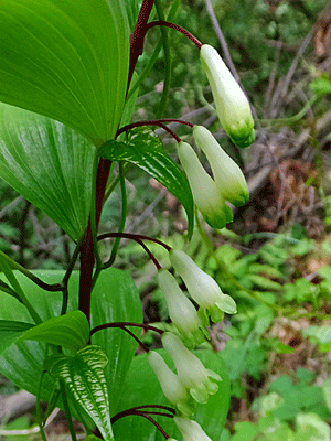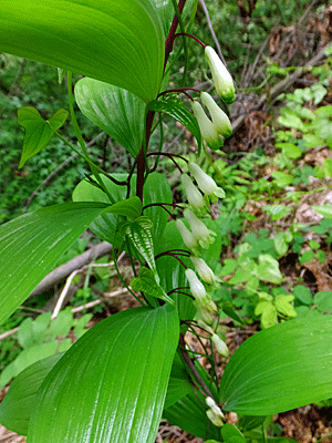 | アマドコロかな?:キジカクシ科 ヤマノイモのツルに巻き付かれ、倒れていた 長さは40cmくらい 茎のワイン色に目を惹かれた |