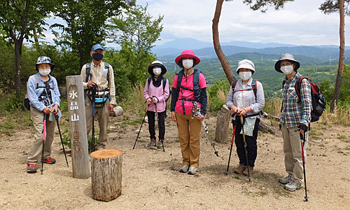 | 水晶山に着いた 12:17 恵那山(頭は雲の中)をバックにパチリ |