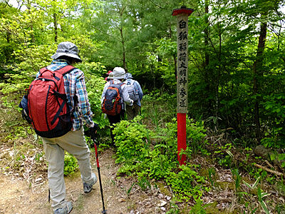 | さあ、帰ろう ここから細い山道に入って 「白狐稲荷大明神」横を通って・・・ |