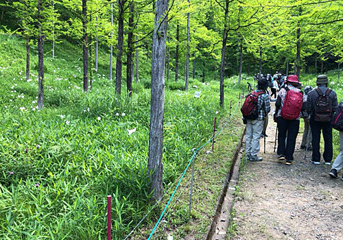 | 2つ目の群生地 メタセコイアが笹の中にたくさん立っていた ここもたくさん咲いていた |