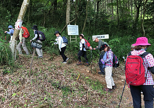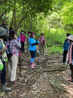 | 地図の分岐が分かりにくくて、 次の全員集合場所Bを通り過ぎてしまい Cの分岐へ行ってしまった 本来登ってくるはずの道を下りて Dの休憩舎へ行くことに、コース変更〜 |