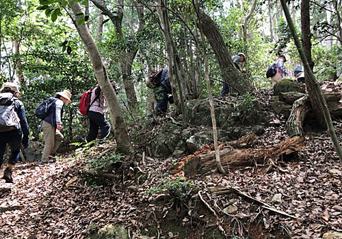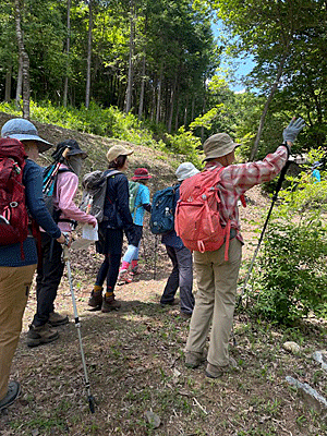 | Bの朝日の塔に着いてしまった・・・ 道を間違えた! 「ここで間違えた」「ここを歩くはずだった」 などなど皆で確認中 |