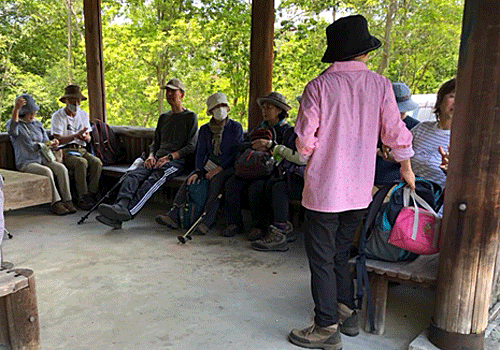 | 休憩後、1名はここから皆と別れて帰る・・・と 「気を付けて〜」「「お疲れ様〜」 |