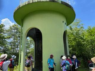 | I夕日の塔の中で集合写真 狭くてゴメン! 外は日向と日蔭があって、顔に影ができてしまうから |
