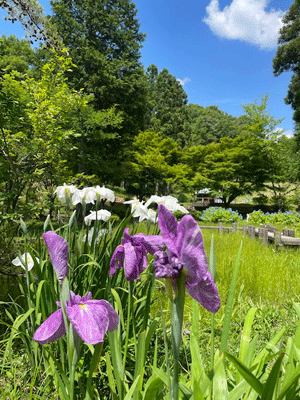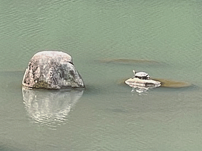 | 「南山溜池」の横を通って 全員集合場所のAへ |