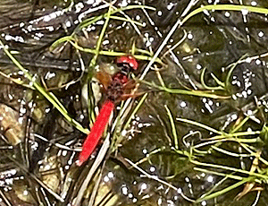 | かわいい 小さい、真っ赤なハッチョウトンボ |