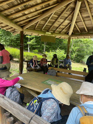| 全員集合場所Dの休憩舎に着いた お楽しみ、おやつタイム!! |