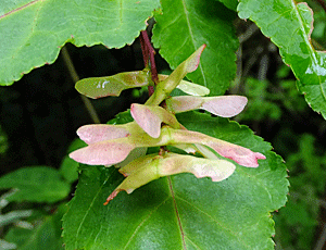 | ウリカエデ:カエデ科 緑色の実がだんだん赤くなる |