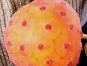 | ツリバナ(吊り花):ニシキギ科 5つに割れた果皮から、朱色の種がぶら下がっていた 近くでよく観察しようと、1個貰ってきた |