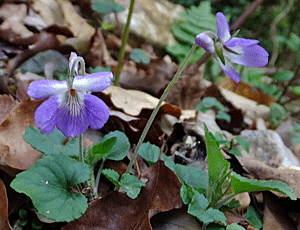 | タチツボスミレの仲間:スミレ科 葉がハート形 柱頭はまっすぐ |