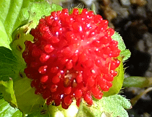 | ヘビイチゴの仲間:バラ科-2 左 実と葉っぱ 右 実 これら↑は、艶がないのでヘビイチゴかな? |