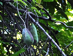 | ツチアケビ:ラン科 登山道から離れた所、木の陰にたくさんの赤いもの! ツチアケビだった! こんなに大量のツチアケビを見るのは初めて! 全体の高さが1m程にもなる! もっと近づこうとしたら、足元の地面はえぐれて、棘の鋭い木が邪魔をして近寄れす・・・ やっと、望遠で撮ったのがこれら 家へ帰ってから調べた所、『味は「スイカ並み」とされる甘さ』らしい ぜひとも1個は手に入れたかった・・・ |