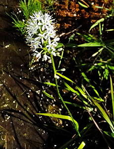 | イワショウブ:チシマゼキショウ科-2 花びら6枚 花の中心に雌しべ、その周りに雄しべ6本 |