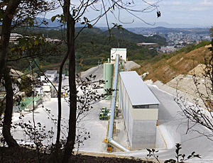 | 工場を見下ろす展望地 11:52 以前は右下の画像にある鉄塔まで山道が続いていたのだが、今はプッツン途切れてしまっている |