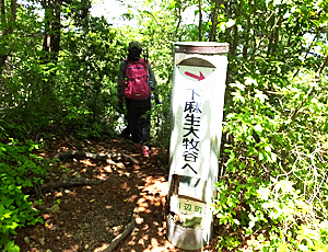 | さあ、下山 右の矢印の方から登ってきて(中級者コース) 下山は直進(初級者コース) |