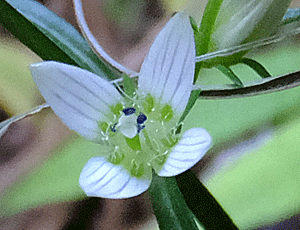 | センブリ:リンドウ科 確かこの辺りに咲くはず・・・と思いながら探していた たった1株だけあった 倒れないように枝で支えてあった |