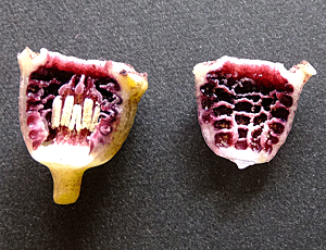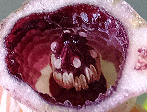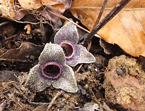 | ↑ これは、他日採取してカッターで切ったスズカカンアオイの花の様子 当日は、参加者に見せたり説明したりで忙しく カメラを取り出す余裕がなかったので、画像を借りてきた |