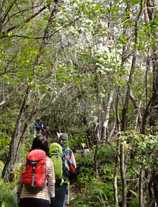 | 遠目にも真っ白に見えるアセビの下を通って・・・ |