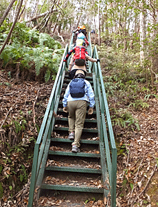 | この階段を登り切った上を 昼食場所に考えていた おなかをすかせていては、 つらい登りになったに違いない |