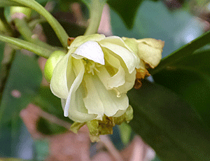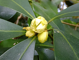 | シキミ:マツブサ科 薄黄色の花が咲いていた これはかなり早咲き 殆どは、つぼみも膨らんでいなかった |