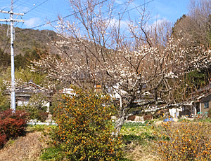 バスは14:56発 慌てなくてもいいちょうどいい時間 民家の庭先のウメを見ながら、 クチナシの実を見ながら植物園へ |