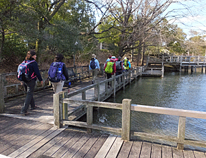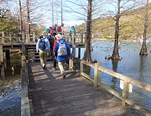 | 池のすぐ近くを歩ける遊歩道 大きなコイが泳いでいたり、ヌマスギの気根を見たりしながらバス停へ 14:30頃着 |
