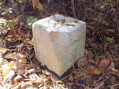| 鉄塔の手前に、三角点があった 木の棒が倒れていたので、立ててからパチリ 今日二つ目の三角点 234.8m 三等か?四等かも読み取れなかった・・・ |