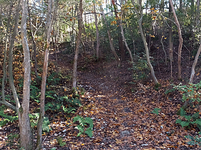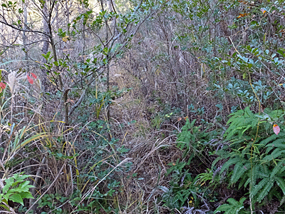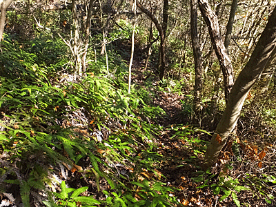 | コシダの繁った急な坂道を5分ほど下りると・・・ | |